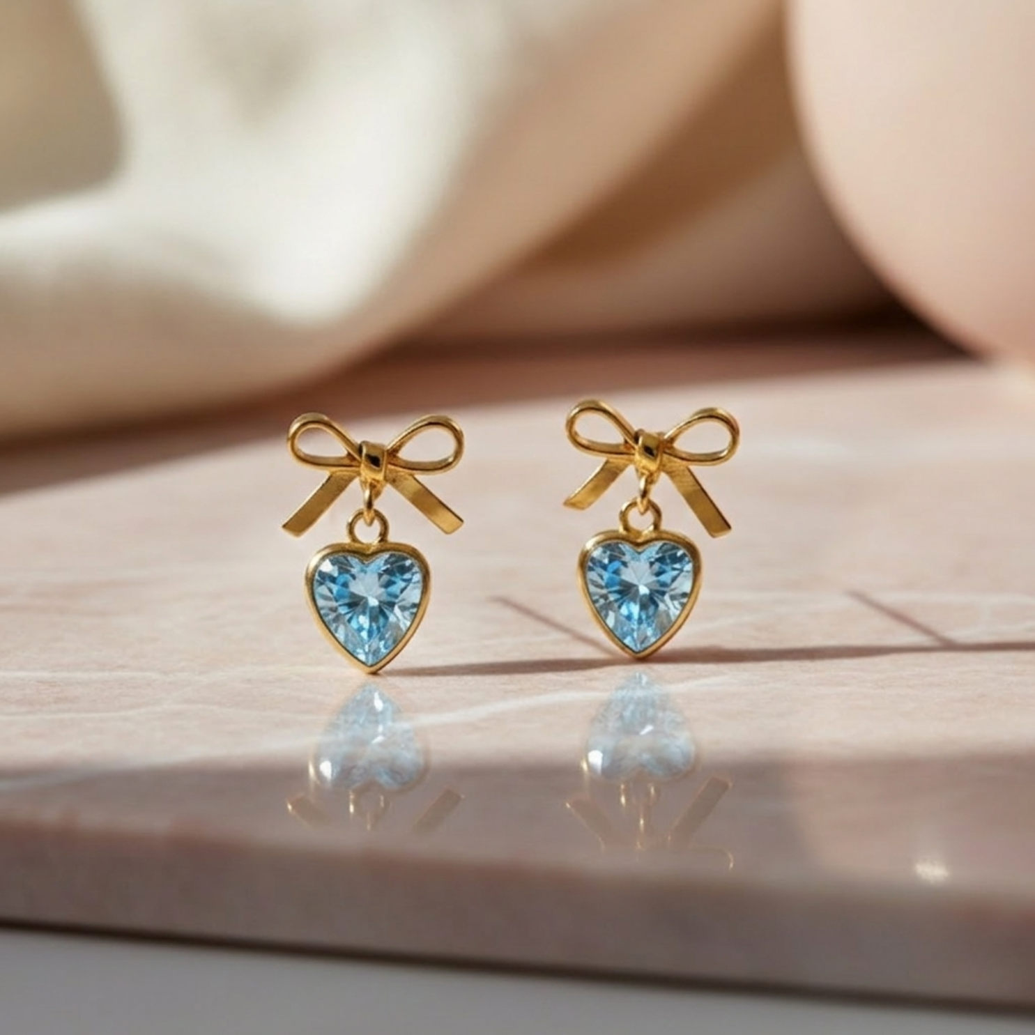 Com design delicado de laço em ouro 18k e coração azul, este brinco é perfeito para meninas que adoram um toque de cor e serenidade no visual.