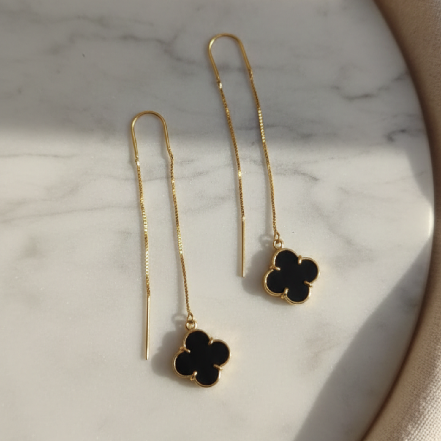 Minimalista, elegante e cheio de significado. O Brinco Line Trevo Ônix em Ouro 18k traz o equilíbrio perfeito entre leveza e sofisticação. A delicada corrente veneziana cria um movimento sutil ao vestir, enquanto o trevo em ônix natural adiciona um toque de força, proteção e elegância atemporal.