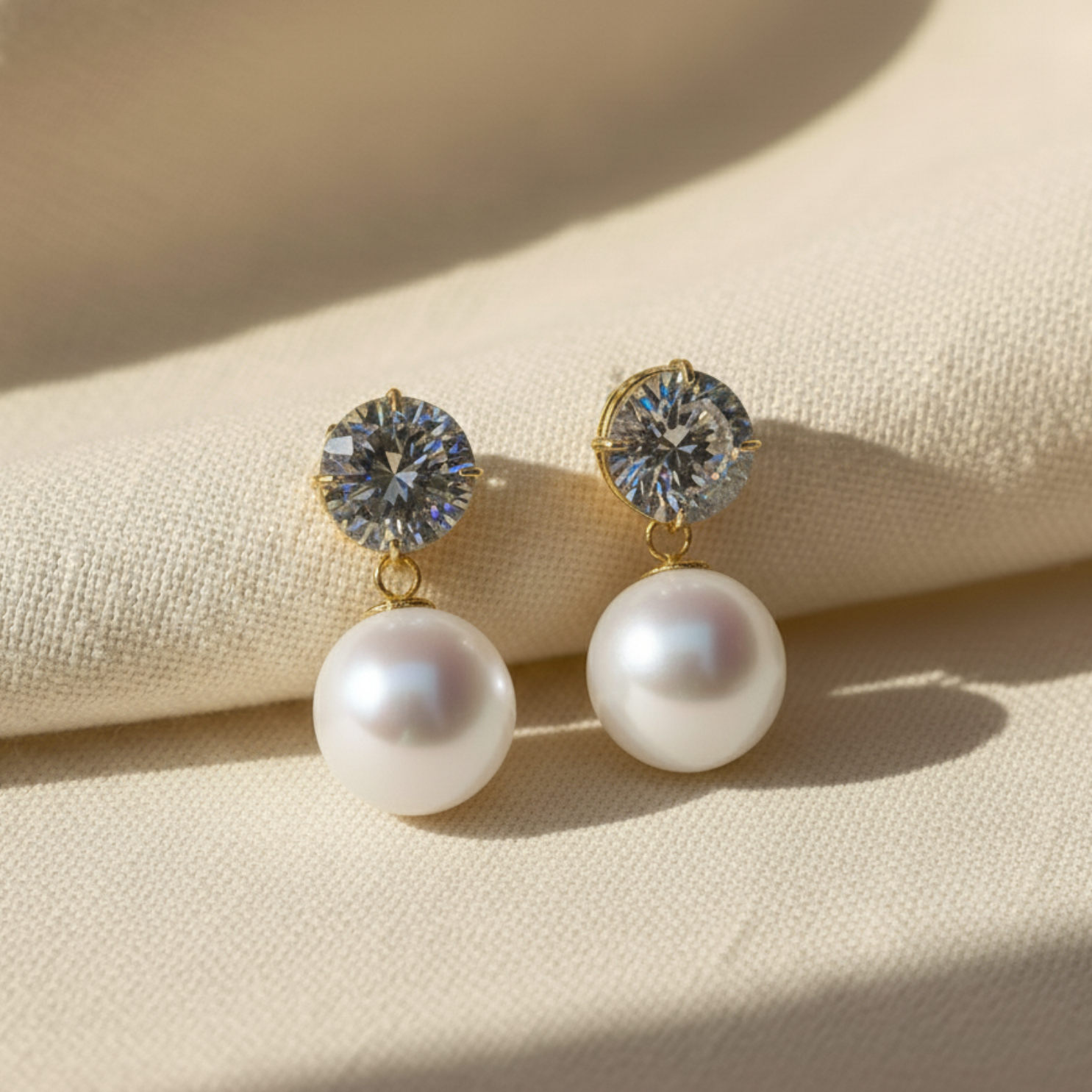 Tipo da Pedra: Perola Natural 10mm e Redonda Branca 10mm Zircônia de Alta Qualidade