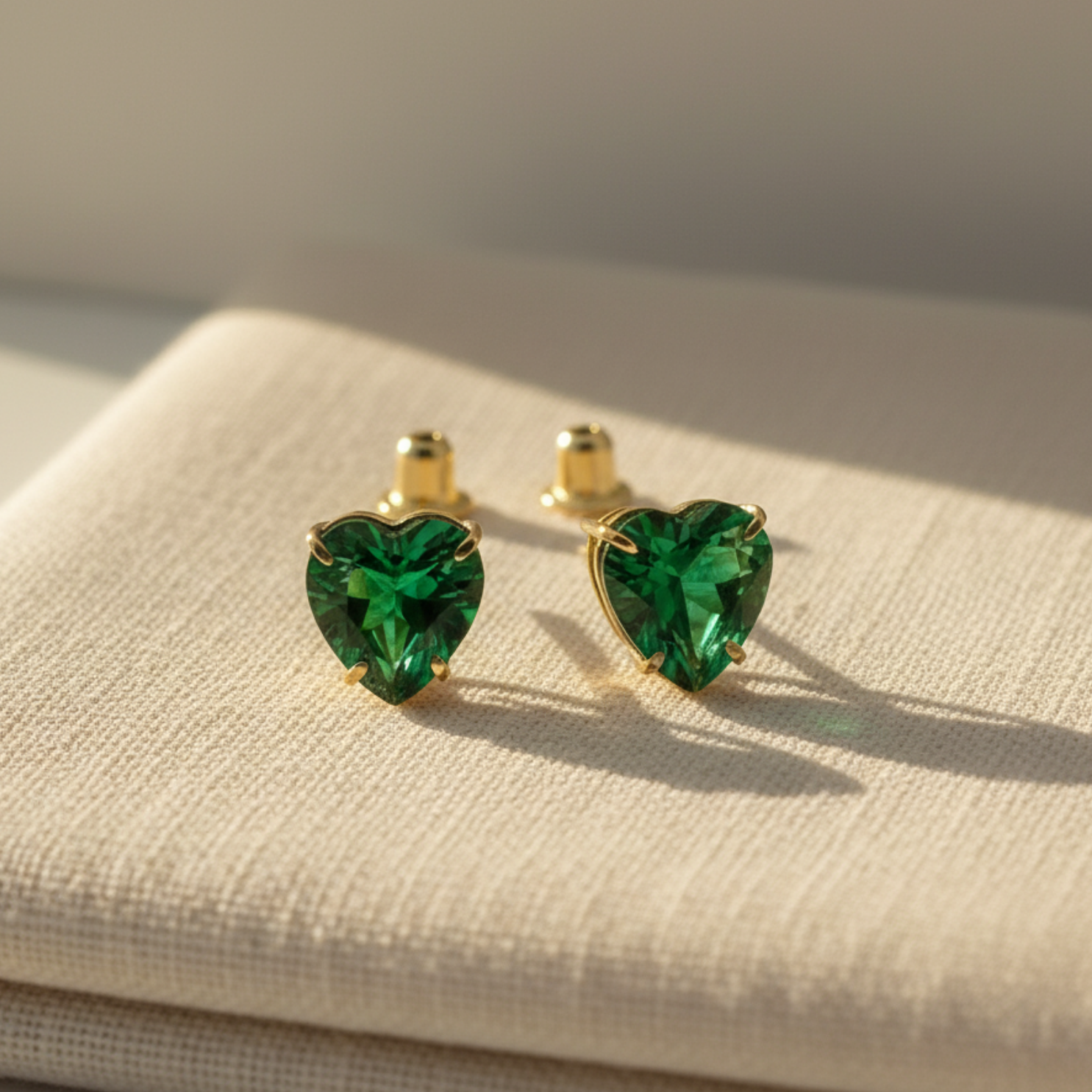 Delicado e marcante, este ponto de luz em formato de coração apresenta uma pedra verde esmeralda de 6mm, lapidada para refletir a luz com intensidade e brilho singular.