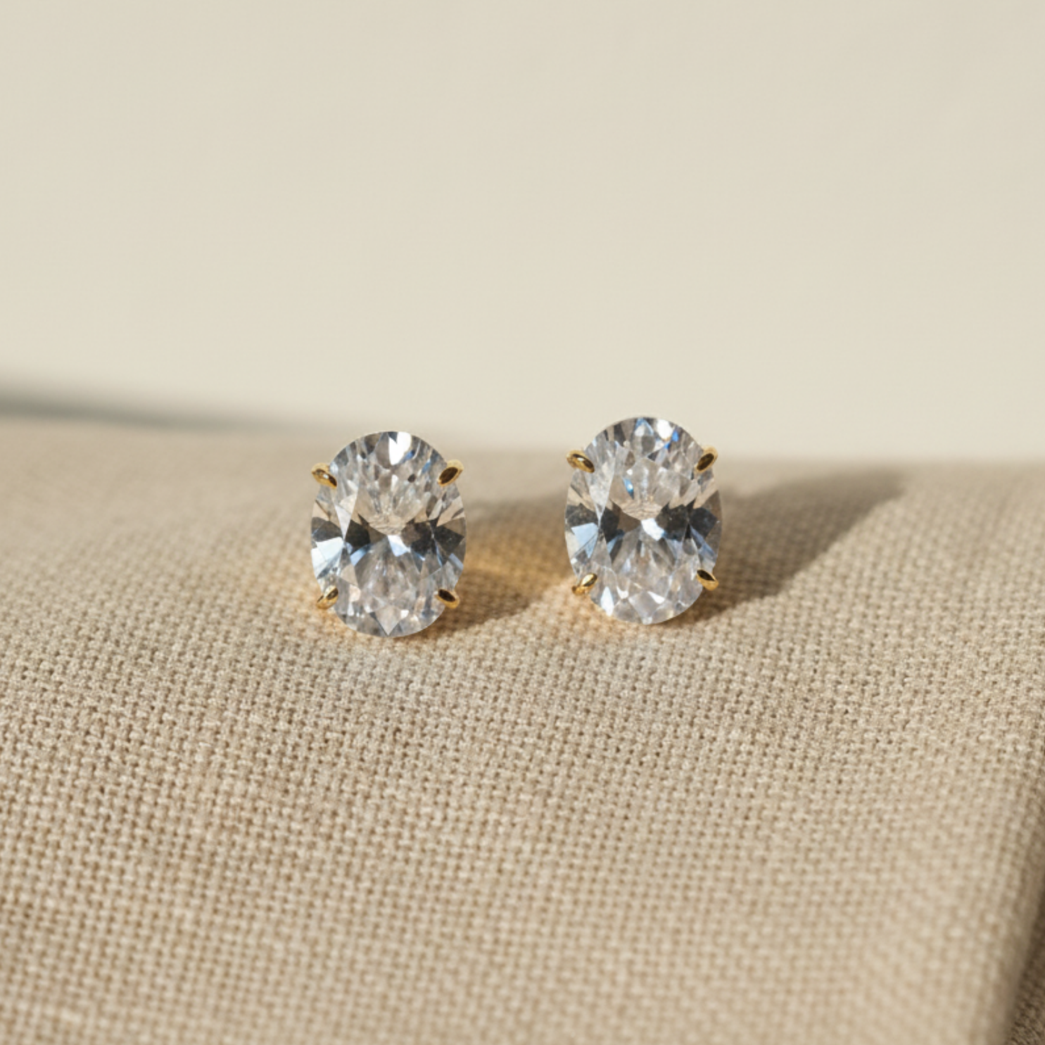Delicado e atemporal, este ponto de luz em formato de oval apresenta uma pedra branca de 6x8mm, lapidada para refletir a luz com brilho intenso e suave.