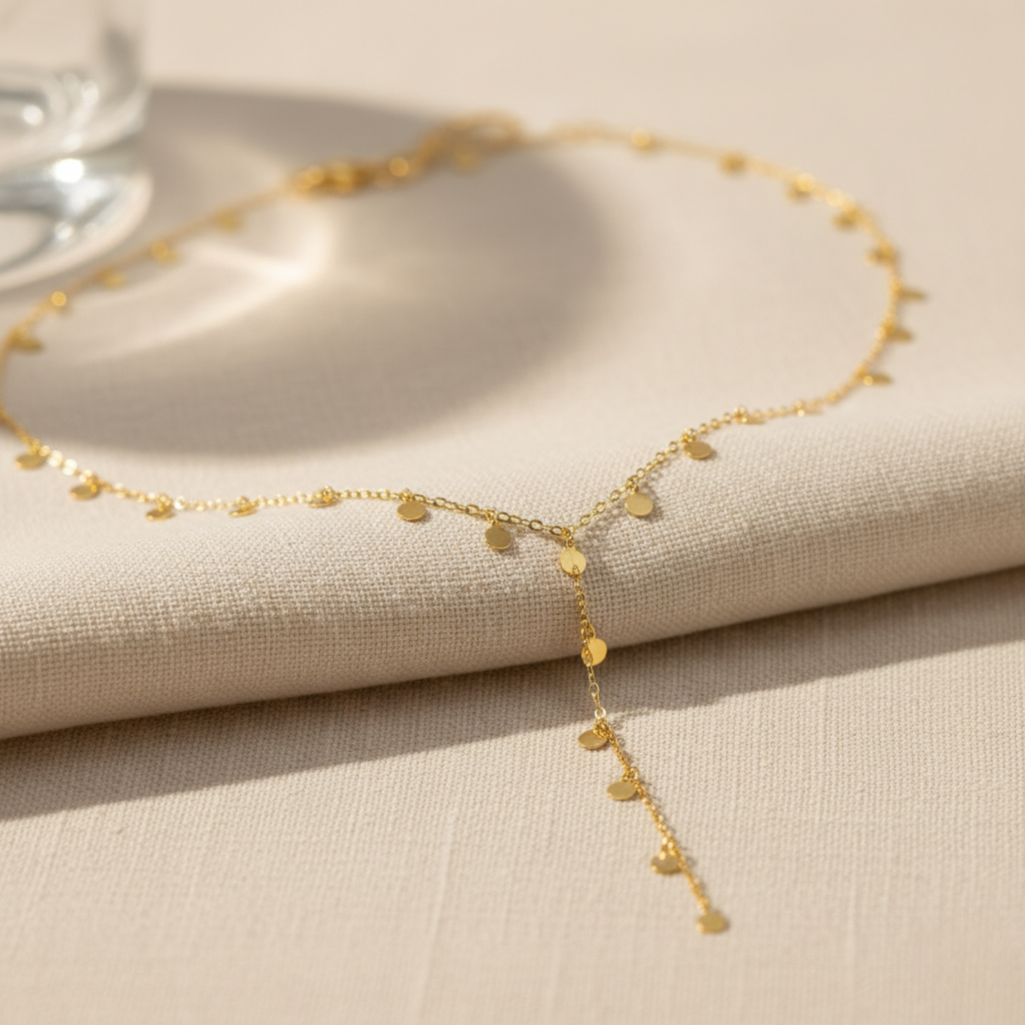 Confeccionado em corrente coffee de Ouro 18k, este colar é adornado com 35 medalhas circulares de 4mm, dispostas de forma harmoniosa ao longo de toda a peça. Seu brilho sutil e balanço elegante tornam-no perfeito para realçar qualquer produção com um toque moderno e sofisticado.