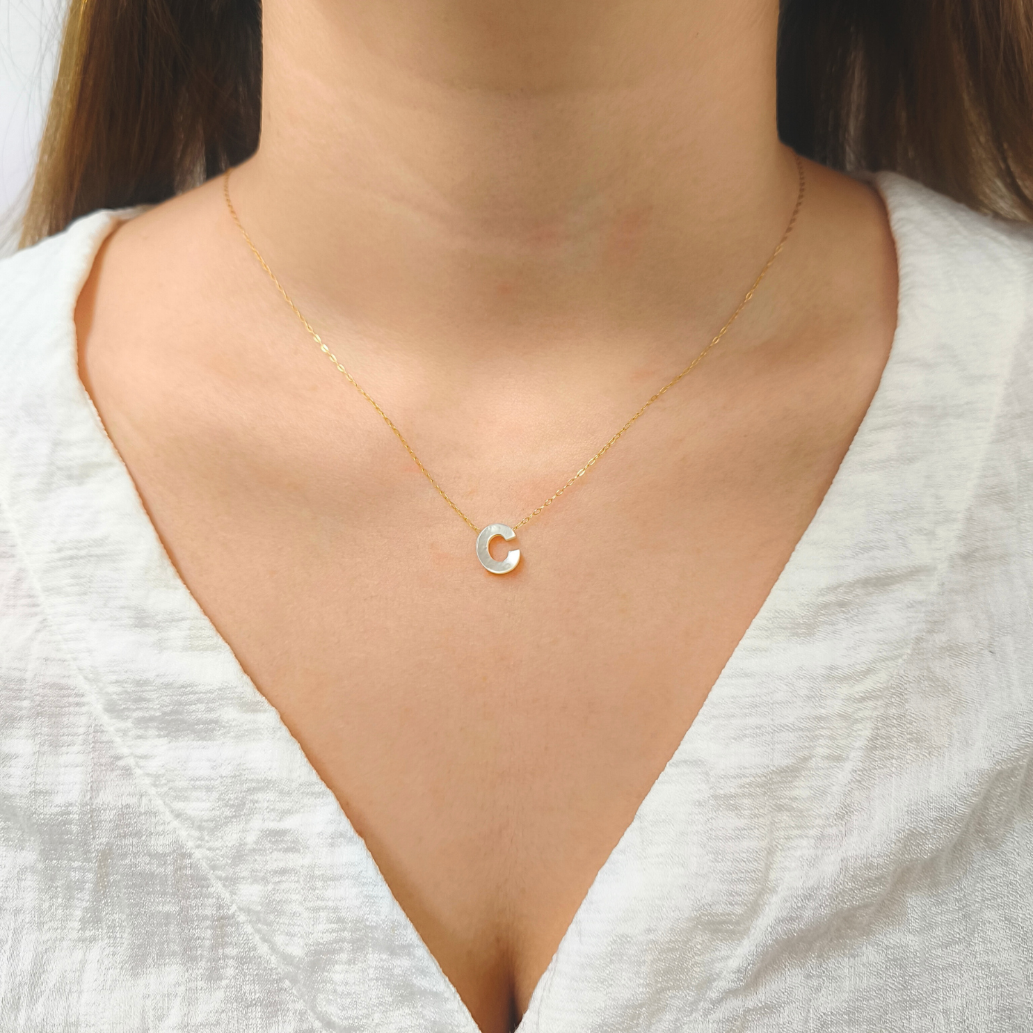 Colar Ouro 18k Letra "C" Madrepérola na Corrente Zeta