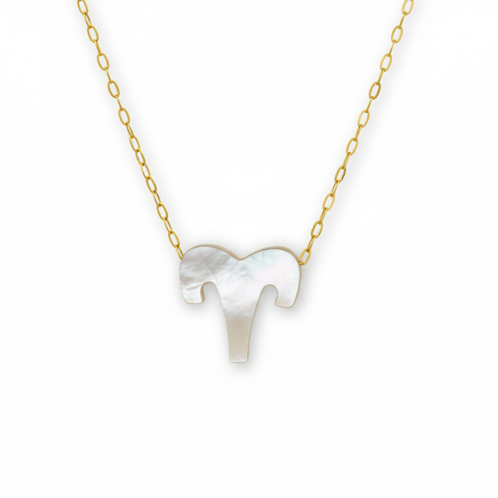 Confeccionado em Ouro 18k, este colar apresenta o símbolo do signo de Áries delicadamente esculpido sobre uma base de madrepérola natural, que irradia um brilho sutil e sofisticado. A joia é complementada por uma corrente zeta, conhecida por sua resistência e brilho intenso, criando um contraste perfeito entre o dourado e o tom nacarado.