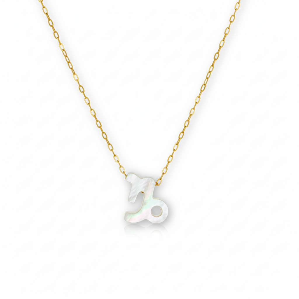 Confeccionado em Ouro 18k, este colar apresenta o símbolo do signo de Capricórnio delicadamente esculpido sobre uma base de madrepérola natural, que irradia um brilho sutil e sofisticado. A joia é complementada por uma corrente zeta, conhecida por sua resistência e brilho intenso, criando um contraste perfeito entre o dourado e o tom nacarado.