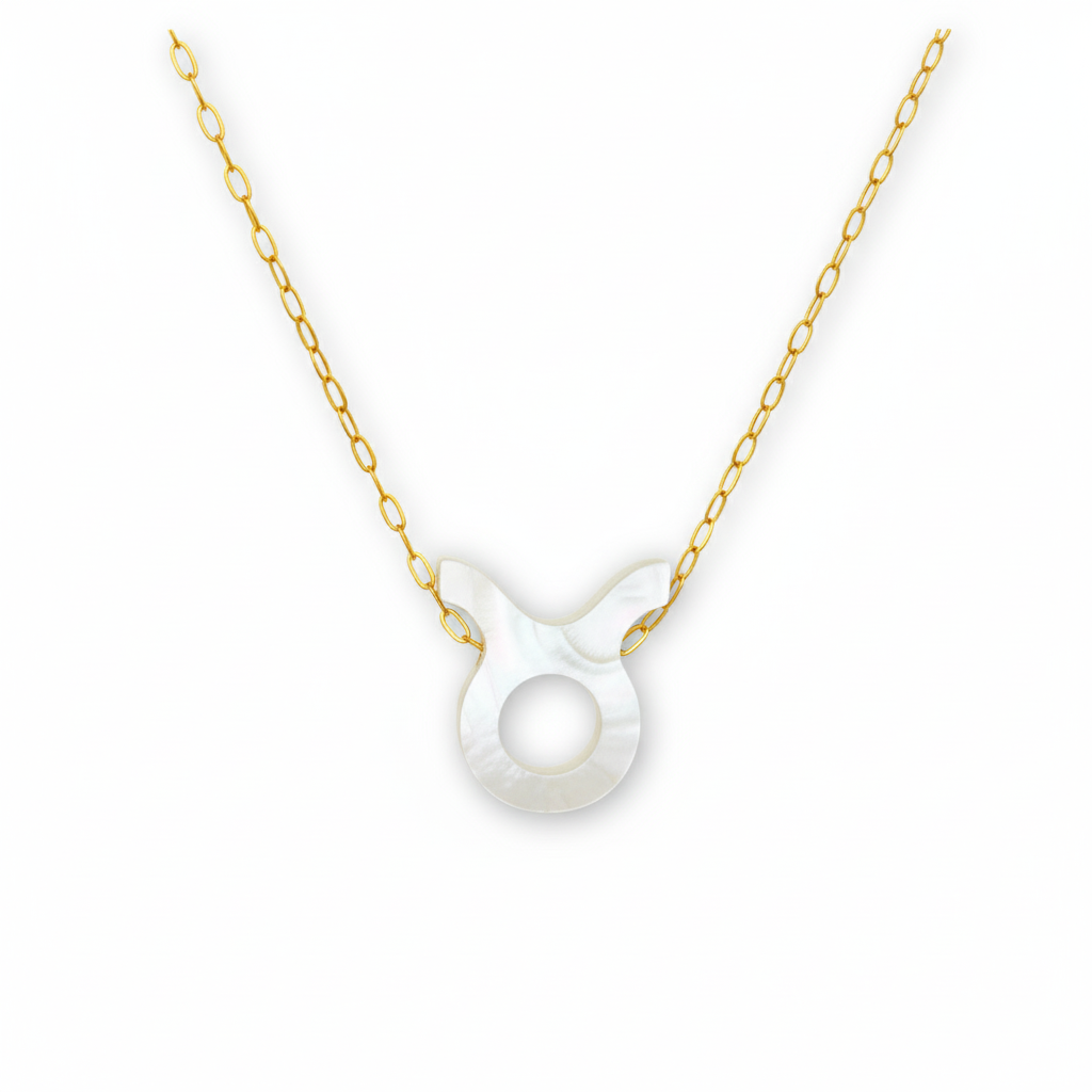 Confeccionado em Ouro 18k, este colar apresenta o símbolo do signo de Touro delicadamente esculpido sobre uma base de madrepérola natural, que irradia um brilho sutil e sofisticado. A joia é complementada por uma corrente zeta, conhecida por sua resistência e brilho intenso, criando um contraste perfeito entre o dourado e o tom nacarado.