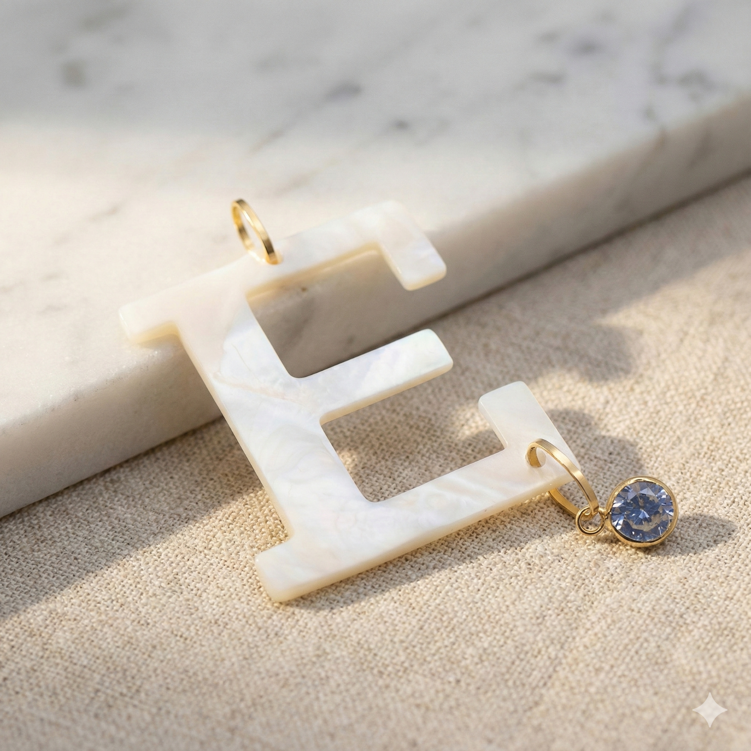 Pingente Ouro 18K Letra "E" Madrepérola