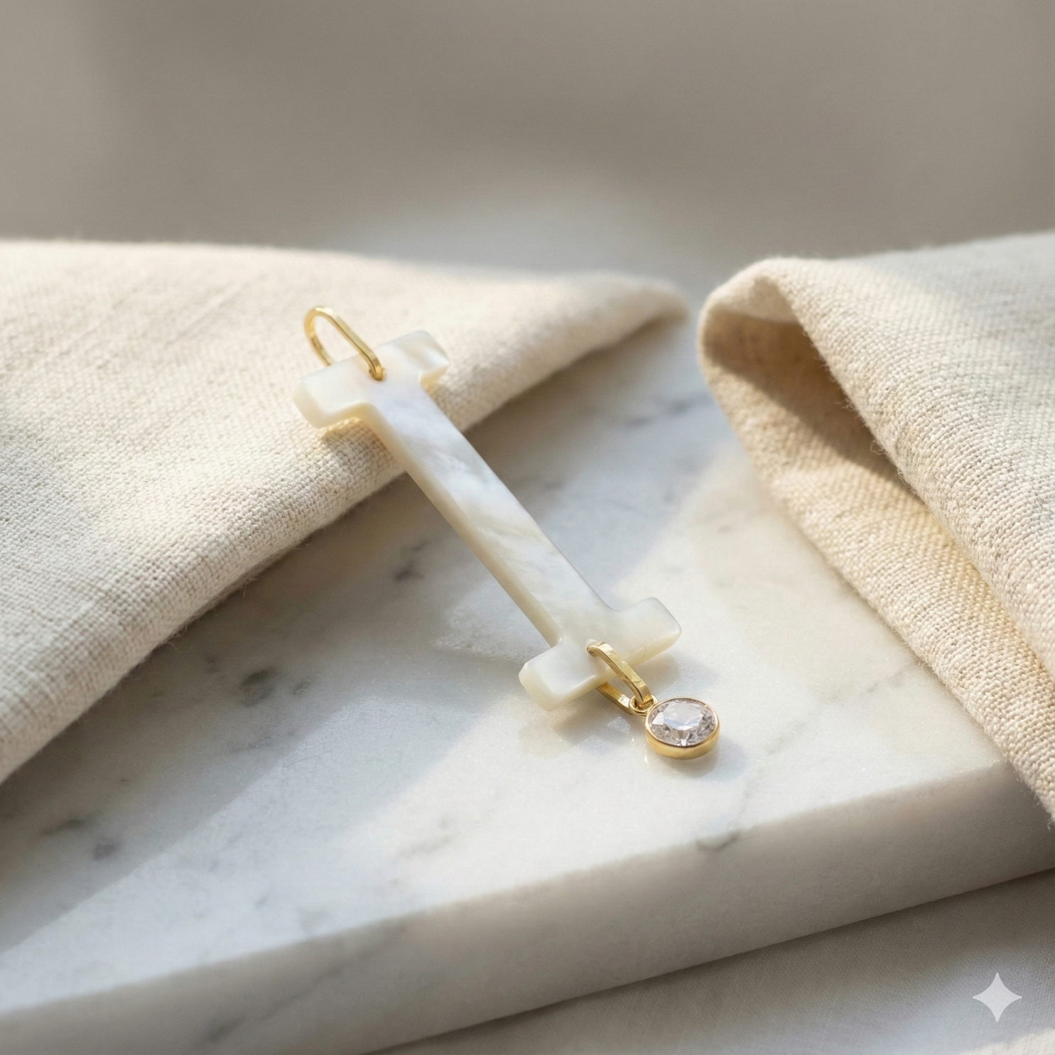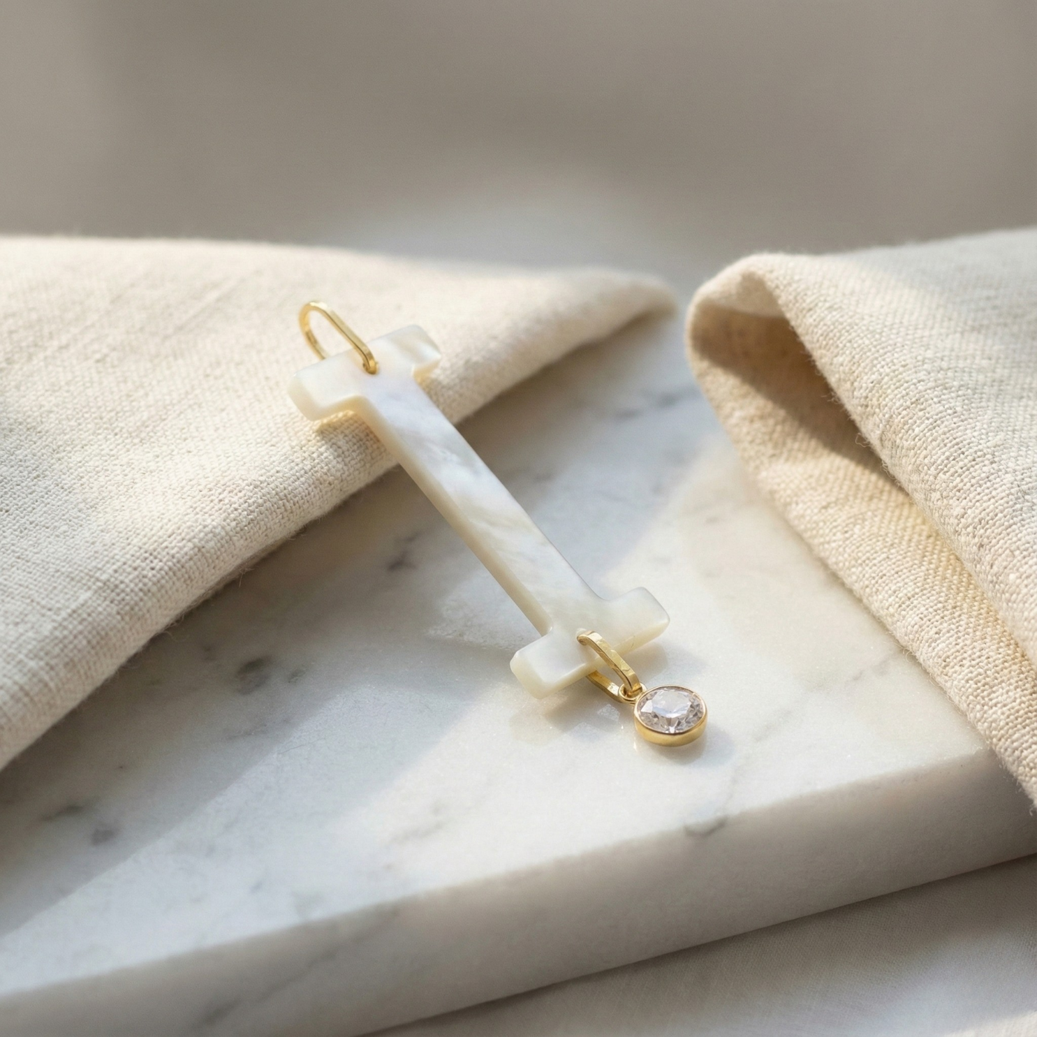 Confeccionado em Ouro 18k legítimo, este pingente traz a letra em madrepérola natural com pingente de zircônia branca, resultando em um contraste elegante e sofisticado.
