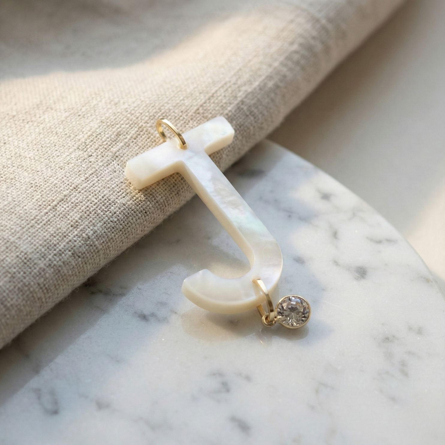 Confeccionado em Ouro 18k legítimo, este pingente traz a letra em madrepérola natural com pingente de zircônia branca, resultando em um contraste elegante e sofisticado.