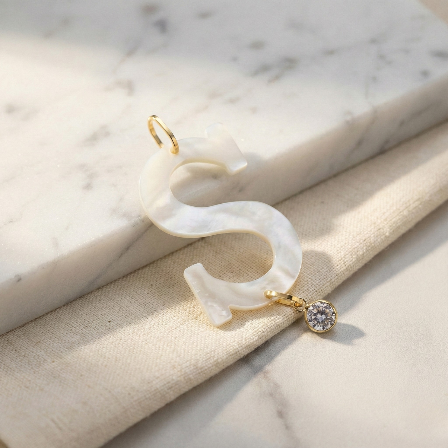 Pingente Ouro 18K Letra "S" Madrepérola