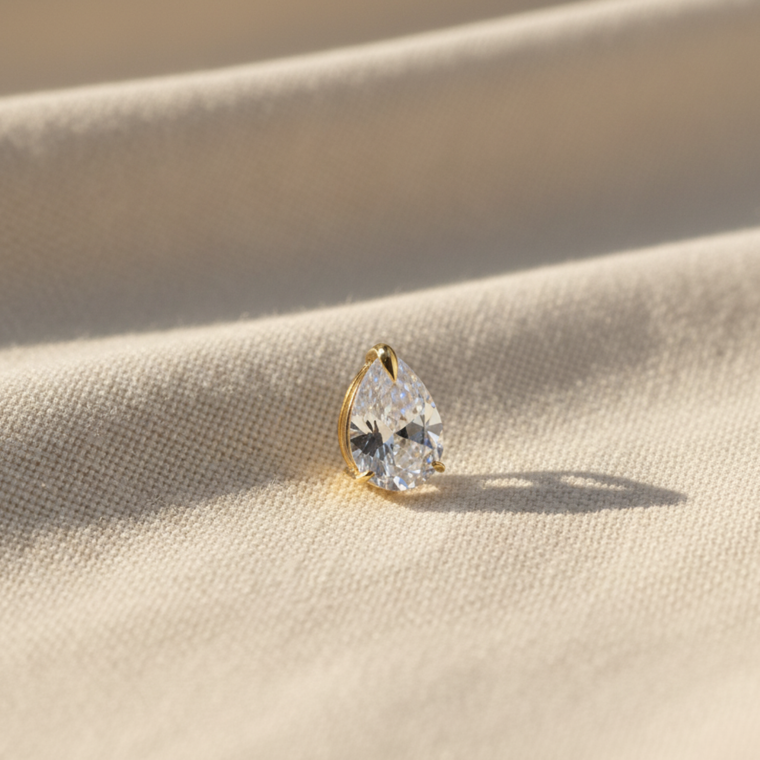 Confeccionado em Ouro 18k legítimo, este pingente apresenta uma zircônia branca de 6x8mm lapidada para refletir máxima luminosidade, símbolo de pureza, sofisticação e brilho eterno.