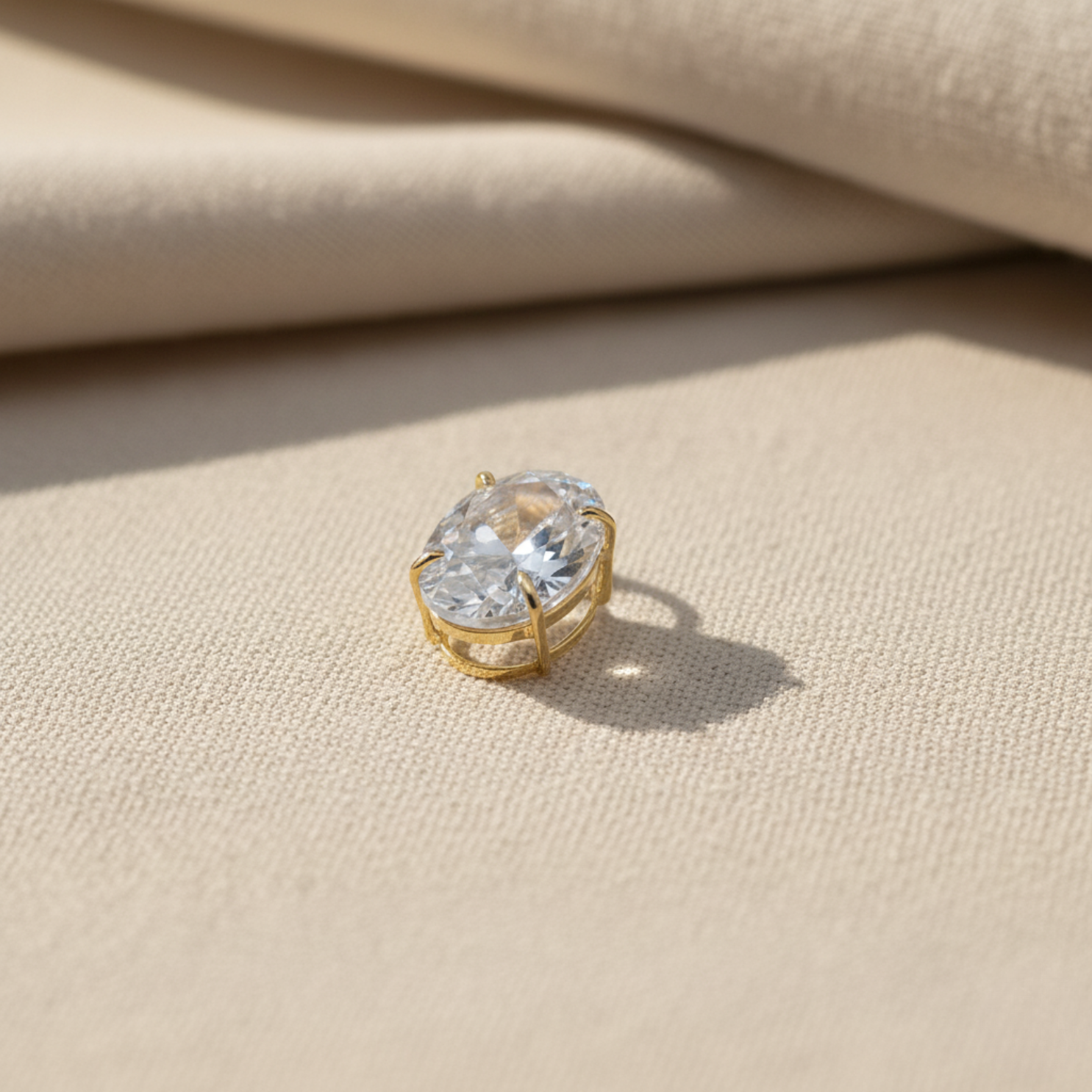Confeccionado em Ouro 18k legítimo, este pingente apresenta uma zircônia branca de 6x8mm lapidada para refletir máxima luminosidade, símbolo de pureza, sofisticação e brilho eterno.