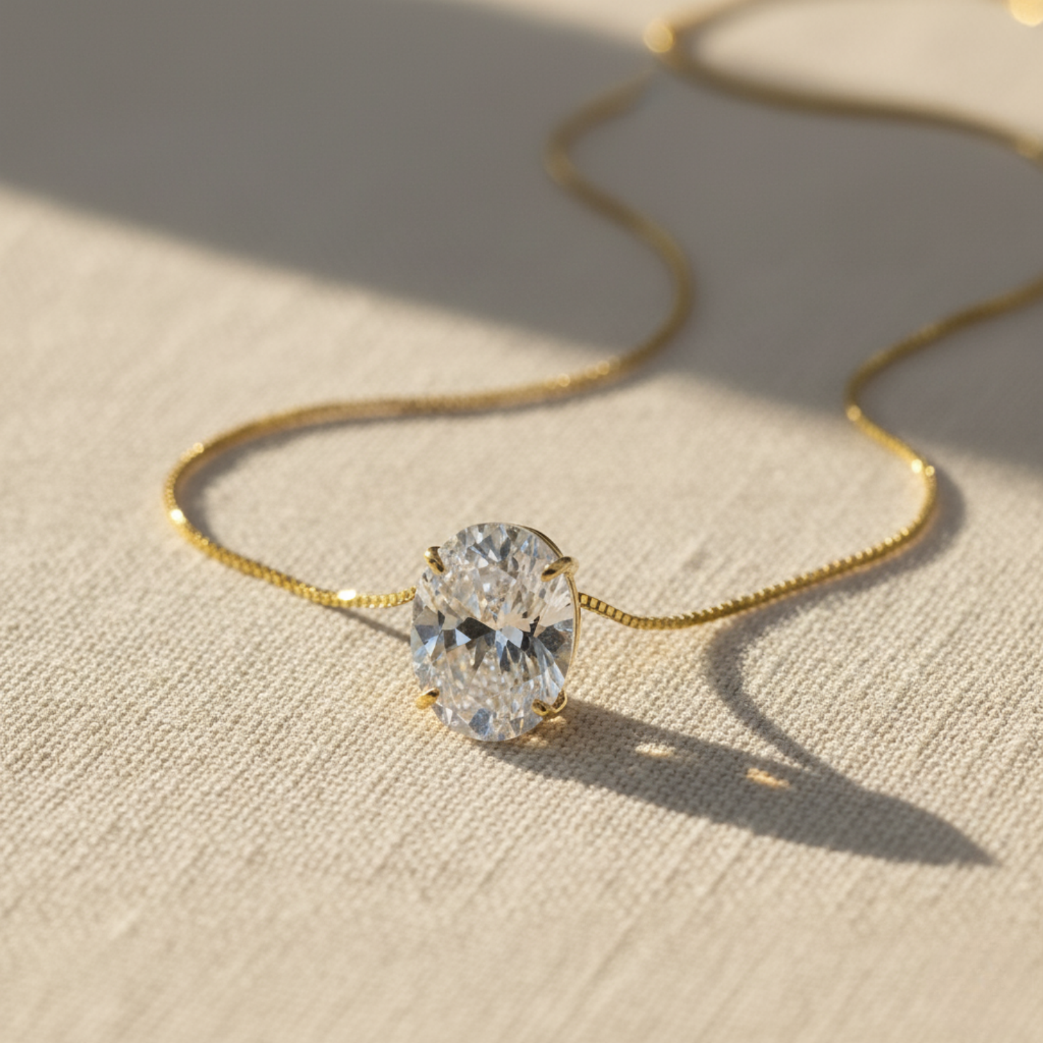 Uma joia delicada e sofisticada que transmite elegância e luz em cada detalhe.