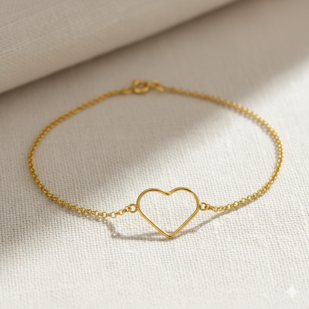 Delicada e atemporal, a Pulseira Lovely em Ouro 18k é o pulseira perfeita para quem valoriza joias com leveza e romantismo. Seu design minimalista destaca a beleza de um coração 10mm em fio de ouro puro, transmitindo elegância e sofisticação em cada detalhe.
